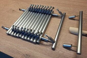 Nerezové madlo-plné, matný chrom, rozteč 128 mm. délka 175 mm 14 celkem kusů. Jsou použitá, ale nezničitelná. Všechny váží přes 2,5 Kg. Kus za 30Kč. Celkem za všech 14 - 400Kč, poštovné 90Kč.