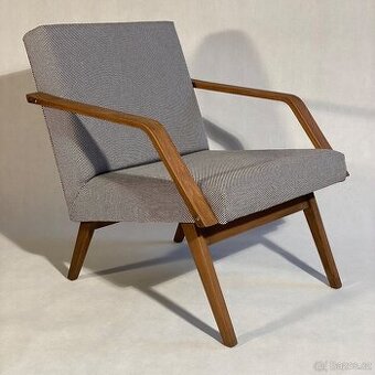 Predám toto veľmi pohodlné kreslo z roku 1960 vyrobené v Mier Topoľčany, ktoré bolo profesionálne zrenovované - kompletne rozobraté a vyčistené, spevnené v spojoch, vymenené popruhy a všetky výplne. Drevo bolo vybrúsené a upravené tvrdým voskom - odtieň Palisander. Použitá látka je vysokej gramáže a má zaujímavú šachovnicovú štruktúru, ktorá kreslu dodáva moderný vzhľad. Osobný odber, zaslanie a možný dovoz po vzájomnej dohode. Pozri aj ďalšie inzeráty.