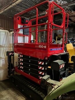 Nůžková plošina na pásovém podvozku. Pracovní výška 7,8 m. Hmotnost 1790 kg. Nosnost 250 kg. Nová, nepoužitá. Technický stav odpovídá stáří a počtu najetých kilometrů/motohodinám. Osobní prohlídka je nutná. Na pozdější reklamace nebude brán zřetel.