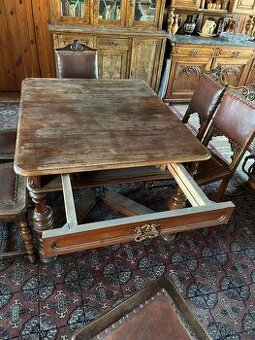 D-120 cm, rozkládací Š- 99 cm V-77 cm + 6 židlí Starožitnost