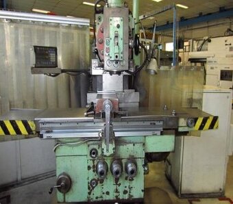 Cena: Dohodou. Frézka FGSV 32 Výrobce: TOS Kuřim Kód: 103802 r.v. 1984 Digitální odměřování Šířka pracovní plochy stolu - 630 mm Upínací rozměr stolu - 630x1.000 mm Podélný posuv (X) - 720 mm Svislý posuv (Z) - 400 mm Příčný posuv (Y) - 360 mm Upínací kužel vřetena - ISO 50 Výkon hlavního elektromotoru - 5.5 kW Délka pracovní plochy stolu - 1.000 mm Hmotnost 4.200 kg VOLEJTE TEL: 603 165 696