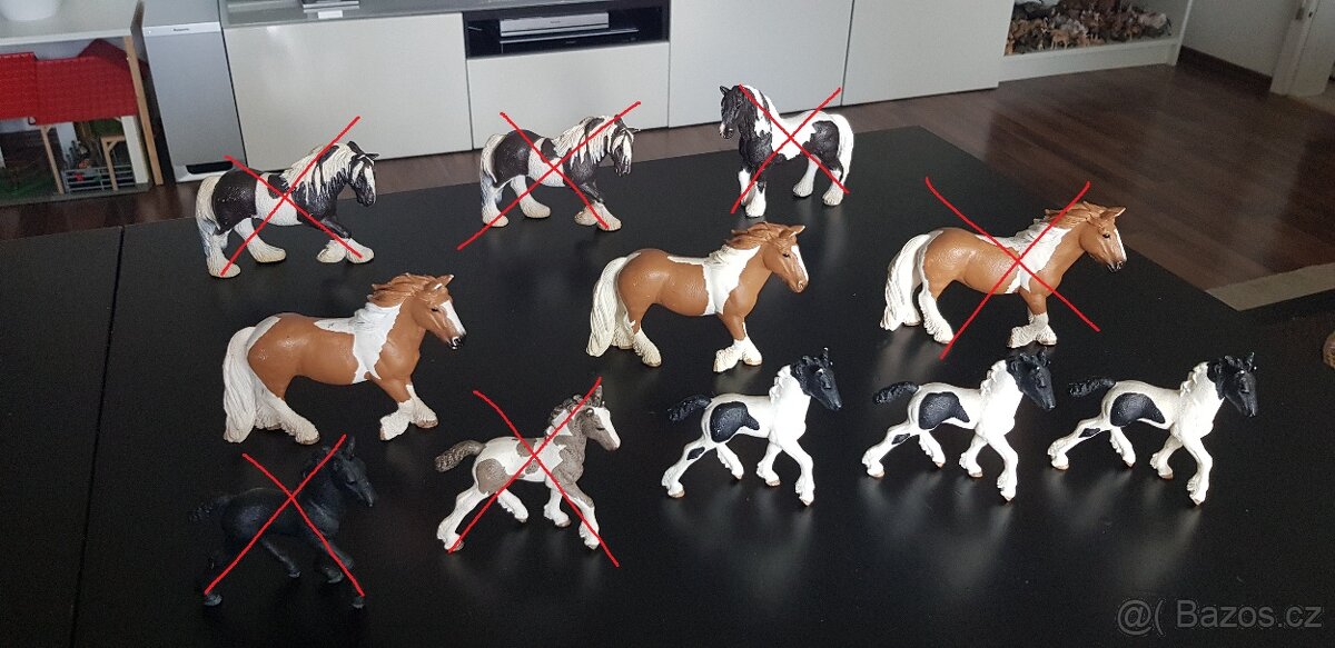 Cena: V textu. Dobry den nabizim ruzne figurky koni plemene Tinker od firmy Schleich. Foto 2 a 3: nalevo a uprostred Tinker klisna rok 2003, bezne odreniny – obe PRODANE. Napravo hrebec z roku 2007 ve specialnim barevnem provedeni (bezny model je hnedobily) s mirnymi odreninami - PRODANY Foto 4: dospele kone stejne jako na foto 2 a 3, klisna nalevo PRODANA, hrebec na pravo ve specialni barve PRODANY, mezi nimi hribe rok 2014 ve specialni barve (kod 83044- Cookie)- mirne odreniny- 110kc Foto 5: 3x hnedobila tinker kobyla rok 2014. Uplne vpravo nejlepsi stav - PRODANA, ostatni 2 s vice odreninkami za 115kc/ kus Foto 6-10: vsechno hribata z roku 2014. Cerny model je specialni barva (kod 82991- Princess jako hribe)- ve velmi dobrem stavu s mini odreninkami- PRODANO. To hnedobile je bezny model, ma odreninky a je PRODANE. 3x cernobile hribe ve specialni barve (kod 83044- Cookie)- mirne odreniny- 110kc za kus Nabizim hromadu dalsich schleich modelu a rarit, podivejte se prosim do mych dalsich inzeratu