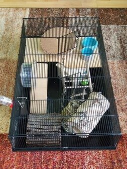 Nabízíme vybavení pro křečka syrského, vše v dobrém stavu po jednom křečkovi: Klec (šířka 46, délka 77cm, výška 26cm) Dřevěný domeček Dřevěný a plastový kolotoč Pítko 2 keramické mističky Rohová plastová miska Dřevěný můstek Prolejzačky Cestovní přepravka Podestýlka Asan 42l (téměř plný pytel) Zbytek krmení a dobrůtek pro křečka (viz foto) Pouze osobní odběr, Praha 9 nebo Praha 3.