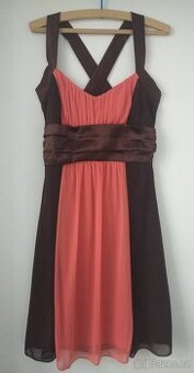Prodám krátké společenské šaty značky Taboo, velikost S, barva hnědá/meruňková, vrchní materiál šifon, spodnička z bavlny, délka 88cm, přes prsa 2x 36cm, pod prsy 2x 32cm, materiál lehce elastický. Zhlédněte další nabídky prodejce