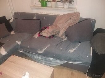 Prodám sedačku, ve tvaru L. Jsou lehce cítit pružiny ale není to nějak hrozné. Sedačka se dá rozebrat do 3 částí.