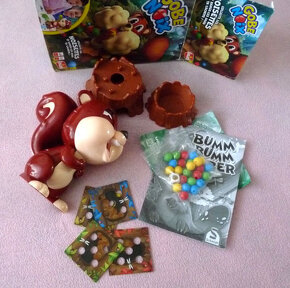 Nabízím funkční hru pro menší děti (výrobce uvádí od 4 let, ale zkušenost ukázala, že to baví spíše mladší děti, tak od 2 let) Děti krmí veverku, podle hodu kostkou vyberou odpovídající kuličku. Veverka v určitý okamžik vypustí kuličky spodem a děti je mají pochytat a vložit do šablony (skrýše). Návod je v němčině, ale přikládám český překlad, který jsem přeložila pro naši potřebu. Výhoda je, že veverka nepotřebuje žádné baterie. Hra je v pořádku, krabice je bohužel lehce odrbaná, viz foto. Mohu poslat přes balíkovnu za 75,-Kč nebo zásilkovnu za 89,- Kč