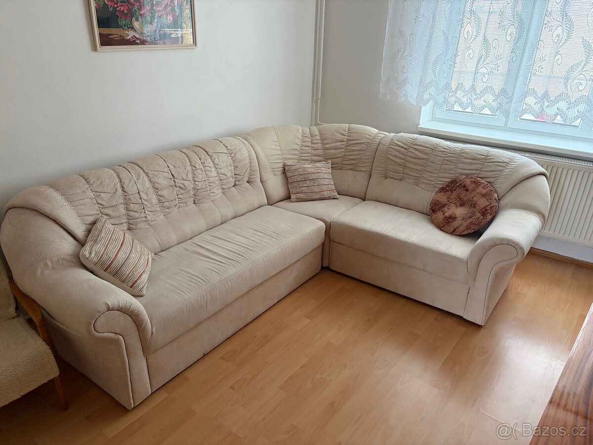 Dobrý den, prodám sedačku a dvě křesla. Sedačka je rozkládací s úložným prostorem. 257x205cm. Stav velmi dobrý.