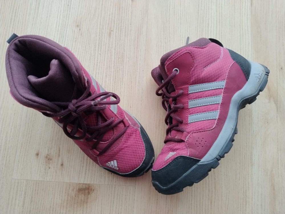 Kotníkové boty Adidas vel. 33 v dobrém stavu, PC 1000 nyní 190kč. Bufy vel. 32/33 zateplené 80.