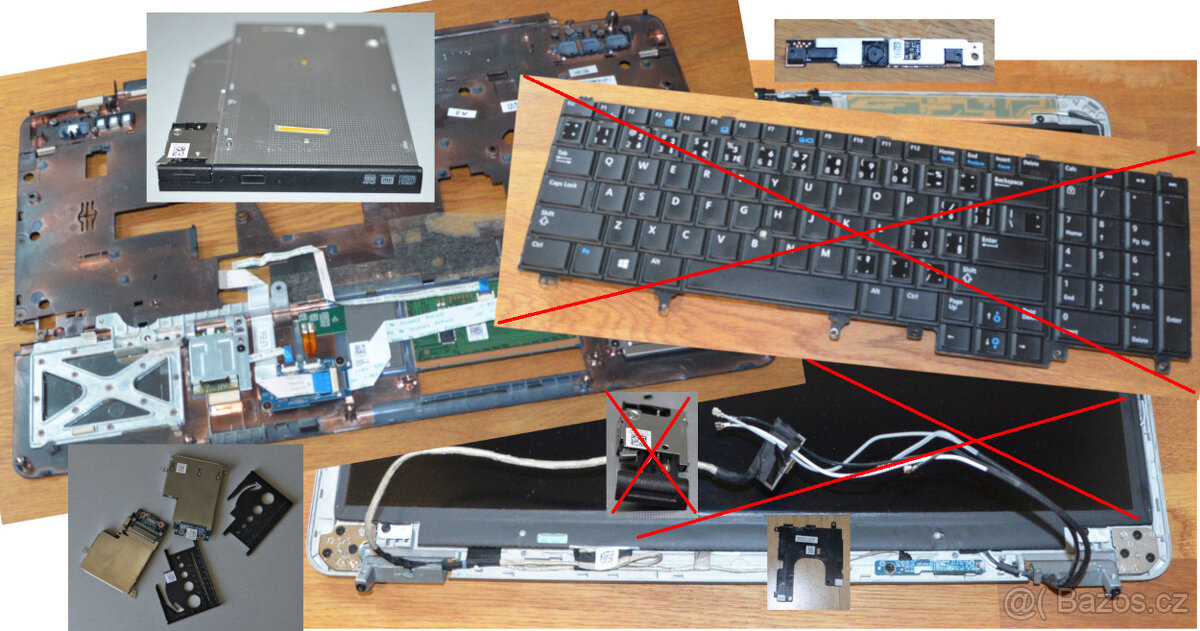 Náhradní komponenty pro notebooky DELL Latitude E6540 případně i E6440 a Precision M2800. Cena od 29 Kč za kus. Dohoda o ceně dle počtu odebraných komponent možná. Vyzkoušené, plně funkční a velmi zachovalé: - Víko s anténami a panty pro DELL Latitude E6540 nebo Precision M2800, bez displeje [SKU/DPN: HHH5P - foto na vyžádání]. Je včetně rámečku [SKU/DPN: T0G05], LCD kabelu [SKU/DPN: 04HV8] a kamery s mikrofonem [SKU/DPN: 767N9] pro DELL Latitude E6540 nebo Precision M2800. Cena 390 Kč. - Plastový díl s touchpadem a čtečkami otisků (FIPS) a Smart Card (SC - kontaktní + bezkontaktní) [SKU/DPN: CWR0W] pro DELL Latitude E6540 nebo Precision M2800. Je bez tlačítek touchpadu/trackpointu a bez LED indikace u vypínače (mohu dodat za příplatek), ale součástí je i Express Card (EC) čtečka [SKU/DPN: 6F6X8] pro DELL Latitude E6540. Cena 490 Kč. - Čtečky Express Card (EC) [SKU/DPN: 6F6X8] a Smart Card (SC - kontaktní) [SKU/DPN: XJN54] pro DELL Latitude E6540 (bez známek použití). Jsou včetně "