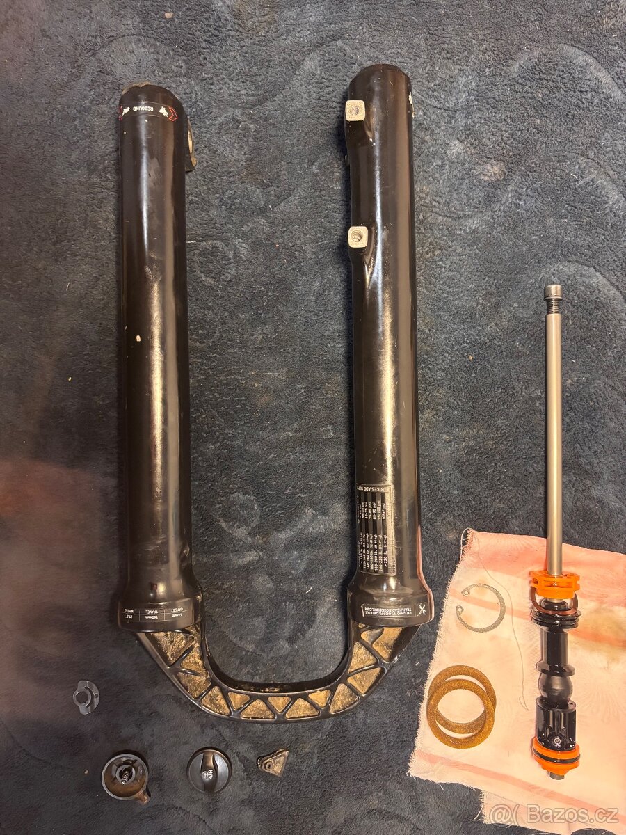 Nabízím k prodeji kombinaci dílů z rozebrané vidlice RockShox 35 RL Gold. Vidlici jsem rozebral protože jsem chtěl zjistit jak funguje a nepotřebuju jí. Takže rád pošlu dál díly když někomu pomůžou za levný peníz zprovoznit jeho vidlici. Spodní nohy: Lze použít na jakékoliv vidlici od RockShox o zdvihu do 160mm a průměru kol 27,5. Mají škrábance z venku ale jinak jsou v super stavu. Cena: 400 Celá vzduchová komora (pístnice) se vším všudy. Lze použít jen pro vidlice RockShox 35 Gold RL. Cena: 300 RockShox Knob Víčko Topcap na zamykání vidlice. Cena: 100