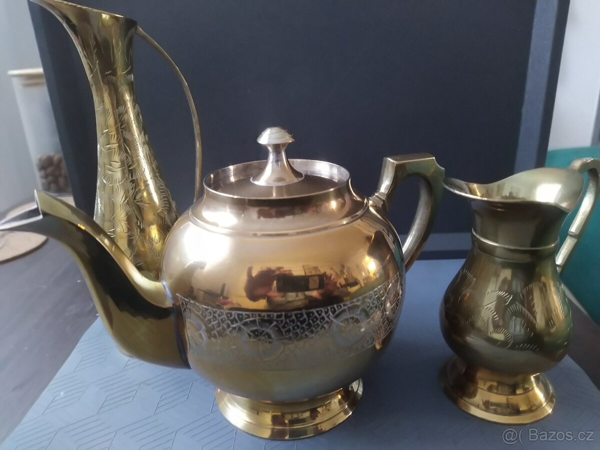 Prodám soupravu mosaznou konvičku a dva džbánky.