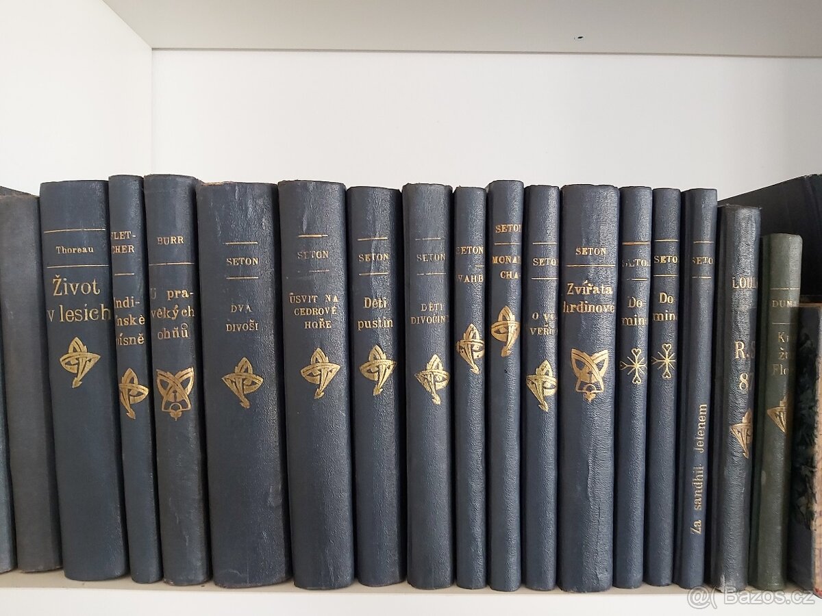 Soubor 11 svazků od Ernesta Thompsona Setona nákladem Knihovny Walden: Dva divoši 1925, Úsvit na cedrové hoře 1924, Děti pustin 1926, Děti divočiny 1923, Monarcha, O veveřici 1923, Zvířata hrdinové 1925, Domino 1924 2x, Za sandhilským jelenem 1925, VAHB 1925. + Henry David Thoreau - Život v lesích 1924. Dr. A.C. Fletcher - Indiánské skazky a písně 1925 H.M. Burr - U pravěkých ohňů 1925 A. Dumas - Kněžna Flora 1926 M.V. Loula - RS. 87 Vše z rodinné knihovny, zachovalé a nepoškozené, pouze celý soubor a osobní převzetí v místě prodeje, ev. možnost osobního předání v obchodním centru Chodov, Praha 4 na trase metra C. Ideální před případnou koupí se domluvit a nejdříve vše fyzicky shlédnout a osobně projednat.