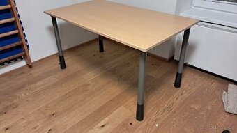 Robustní konstrukce, výškově nastavitelné. Vryp v desce viz foto. Možno použít jako PC stůl nebo pracovní. Pouze osobní odběr Poděbrady
