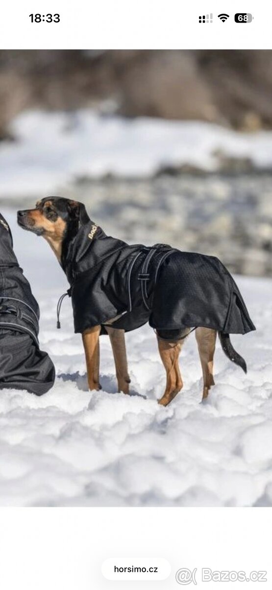 Pouzivana, bez vad, gumičky ok, přezky také. POUZE USTŘIŽENÁ OCASNÍ KLOPA, aby lépe sedla na nesený ocas. Vystřižené V, viz foto:) PC: 2500,- Popis výrobce - Pláštěnka pro psy Back on Track® udrží vašeho psa v suchu za každého počasí, ať už se jedná o přeháňky nebo přívalový déšť. Vnější strana je z odolného polyesterového materiálu s pevností 600D s kvalitní podšívkou z revoluční polypropylenové tkaniny Welltex™ s keramickým povrchem. Technologie Welltex® odráží teplo zpět do těla jako infračervené záření. Pomáhá zmírnit svalové napětí a podporuje prokrvení, což může urychlit proces regenerace. Pláštěnka je opatřena reflexními prvky pro lepší viditelnost, nastavitelným otvorem kolem kohoutku a otvorem u krku pro snadné připevnění vodítka. Aby deka zůstala na svém místě a zároveň neomezovala psa v běžném pohybu je opatřena elastickými popruhy kolem zadních nohou. Dále má ochranu břicha s nastavitelným zapínáním. V oblasti prsou lze upravit velikost pomocí elastických šňůrek.