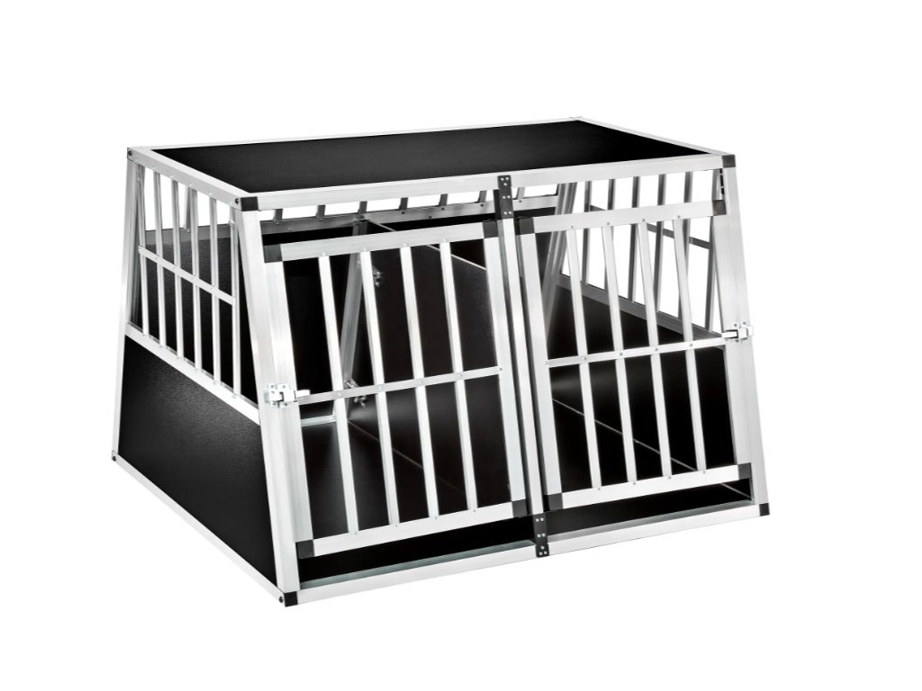 Dvojitá přepravka pro psy se šikmou zadní stěnou bez přepážky.Celkové rozměry (ŠxHxV) 104 x 90,5 x 69 cm Úhel náklonu přední i zadní: 75 ° Hmotnost: 20 kg Materiál: Hliníkové profily a dřevotřískové desky, hrany z plastu Více komfortu při jízdě Místo odpočinku a útočiště Vysoká kvalita a funkčnost Pevná konstrukce Praktické dvoukřídlé dveře.MOžno zaslat.