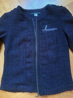 sako tmavě modré, vel 38,prsa 90cm, pas 90cm, délka rukávu 61cm, ramena 42cm, délka 55cm,STAV VELMI DOBRÝ
