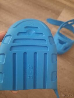 Návleky - pro ochranu dětských botiček při jízdě na odrážedle, měkký přizpůsobivý materiál, nezanechávají stopy na podlaze, s protiskluzovou úpravou, pro velikosti bot os 21 do 27, vyrobeno v Německu, modrá barva