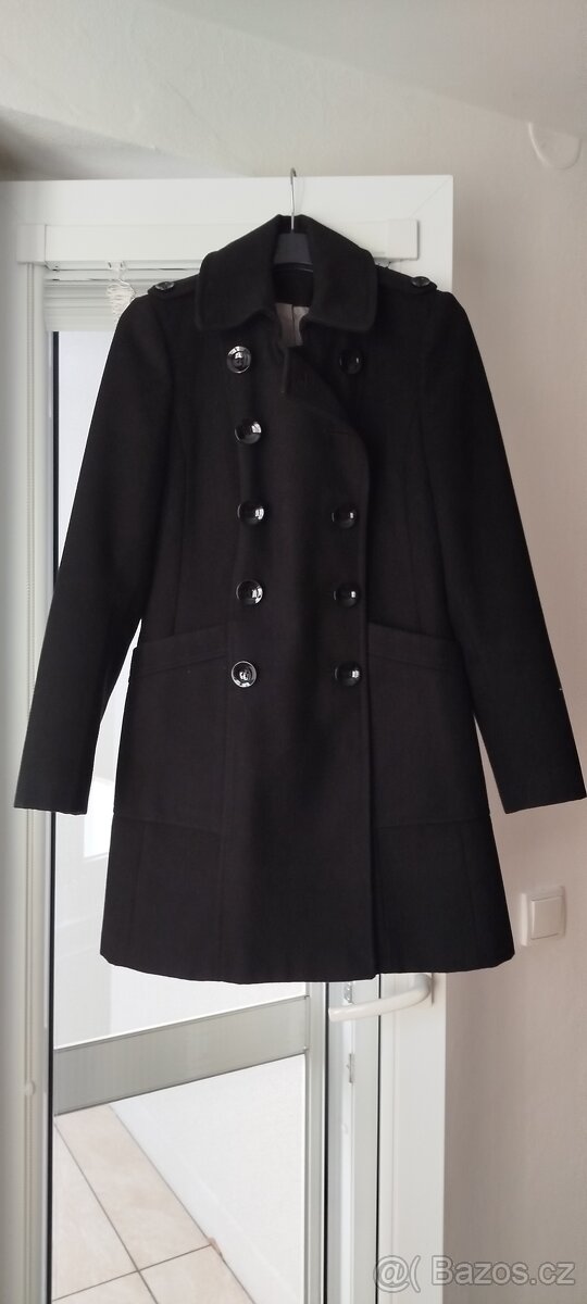 Prodám černý kabátek, vel.36/S, délka 85 cm. Marks & Spencer.