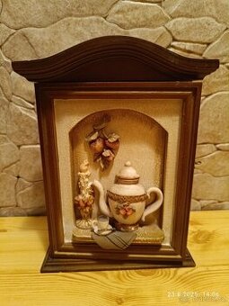 Prodám dřevěnou závěsnou vykládanou schránku na 6 svazků klíčů. Výše 25,5 cm, šířka cca.19 cm. Používané, místy lehce odřené. Preferuji odběr Plzeň.