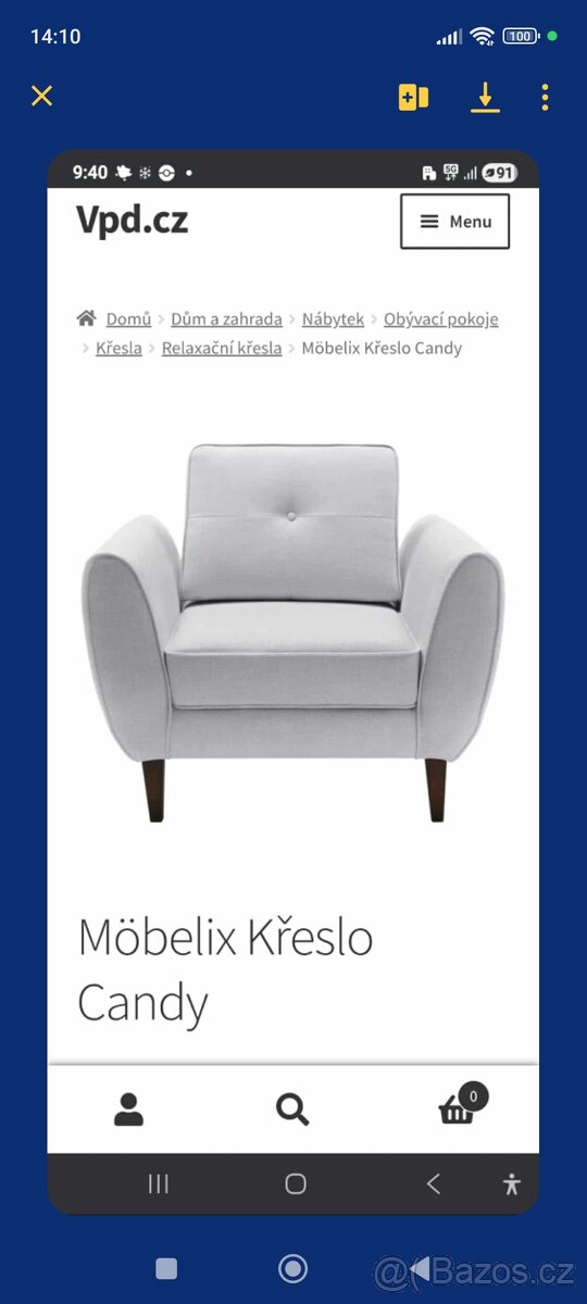 Nové křeslo.Nevhodný dárek. Původní cena 9000 Kč.