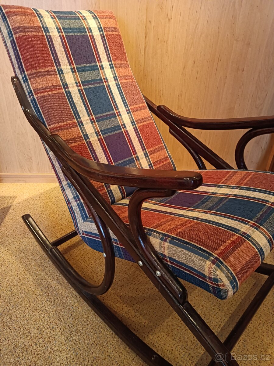 Prodám pevné, houpací křeslo firmy TON, nově počalouněno, nevysezeno za 3000 Kč.