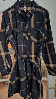 Hezká košile / košilové šaty zn. Ever.me. Barva černá s béžovou. Materiál silnější bavlna, hodí se na zimní období. Velkost 42, prosím měřte: 86 CD, šíře 59 cm. V pase je možné uvázat pásek. Nošená, v bezvadném stavu. Platba předem, Zásilkovna, PPL či Balíkovna dle aktuálního tarifu