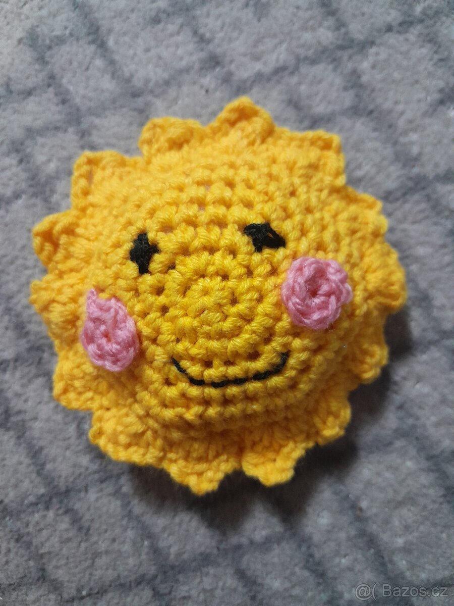 Háčkovaná emoční sluníčka, průměr 9 cm. Cena je za kus.