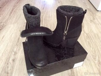 Nový boty na 2 zipy. Semišová kůže. Na širokém podpatku 10 cm.