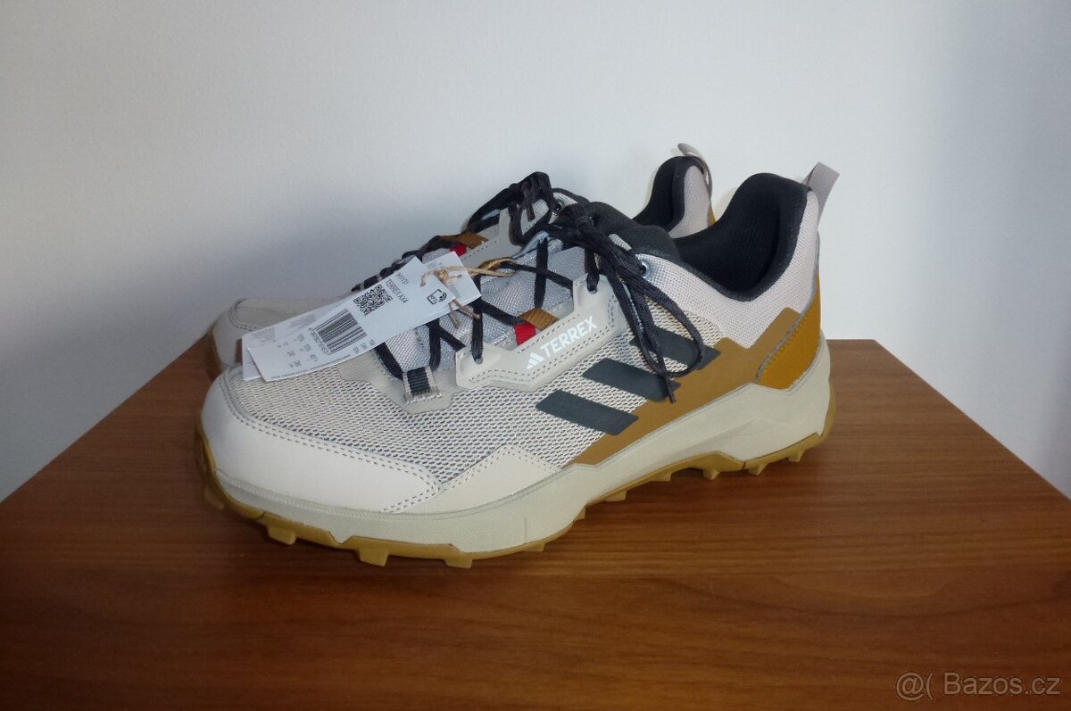 Model Terrex AX4, sportovní boty trekové pískové pánské pevné. Velikost 45 a 1/3. Nové, nepoužité, ještě s cedulkami, muž má troje podobné, tyto prý nevyužije. Info od výrobce: Trekové boty Terrex AX4 značky adidas jsou všestranné boty, ideální pro různorodý terén. Od turistiky po horské lezení a via ferraty, podporují vaše nohy lehkým, a přitom silným a stabilním designem, který usnadňuje koncentraci na stezce. Vyrobené částečně z recyklovaných materiálů, kombinují lehkost s odolností. Svršek ze síťoviny a syntetických materiálů zajišťuje ventilaci a trvanlivost. Pěna EVA v mezipodešvi zaručuje komfort a podporu, a podešev z gumy Continental nabízí vynikající přilnavost na mokrých i suchých površích. Tyto boty jsou ideální pro dlouhé túry a náročnější trasy. Bohužel již bez originální krabice, tu muž vyhodil a boty uložil do botníku...