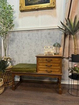 Šířka 100 cm, hloubka 41,5 cm, výška 71 cm, výška sedu 47 cm. Masivní dubová konstrukce s krásně vyzrálou patinou, klasickým profilováním a třemi plnohodnotnými zásuvkami s původními kovovými úchyty. Osobní odběr a doprava: Preferujeme osobní vyzvednutí. Nabízíme rozvoz po celé ČR i do zahraničí 12 Kč/km (počítá se celá trasa, tam i zpět). Při zájmu více zákazníků v jednom směru je možné využít sdílenou dopravu. Je možné se domluvit také na zaslání přes TOPTRANS nebo Českou poštu, ale upozorňujeme, že doručení může trvat i 14 dní. Podmínky prodeje: Jedná se o starožitné/použité zboží, které může nést známky opotřebení. Stav odpovídá fotografiím. Osobní prohlídka možná po domluvě. Vrácení není možné, nabízíme však výměnu za jiný kus stejné nebo vyšší hodnoty (s případným doplatkem). Doklad o koupi na vyžádání (vše evidujeme pro DP).