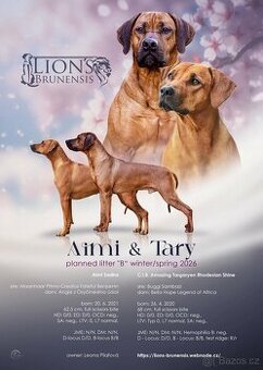Cena: Dohodou. K prodeji jsou 3 vymazlení standardní kluci, odběr 13.3. 2026, přijímáme nezávazné návštěvy, hledáme pro ně milující rodiny. Přijímáme rezervace na naše štěnátka, která se nám narodila 12. ledna 2026! V naší CHS Lion’s Brunensis jsme přivítali na svět 13 zdravých štěňátek, 7 kluků a 6 holčiček. Všechny štěnátka mají ridge, minimum bílé, bez DS, zálomku nebo bloku na ocásku! Budou vhodná na výstavy i jen jako rodinní společníci. Naše miminka budou zvyklá na běžné zvuky domácnosti i zahrady, budou plně socializována. Vyzkouší různé povrchy podlahy i různé druhy hraček. Budou vyrůstat s námi v domácnosti, s ostaními pejsky. Snažíme se dělat maximum pro to, aby odcházela do světa sebevědomá, vyrovnaná a připravená na život v rodině. Zdravotní testy rodičů našich štěnátek: tatínek C.I.B. Amazing Targaryen Rhodesian Shine D.O.B 2HD: 0/0, OCD: neg, LTV: Typ0, L7,SA: neg, JME: N/N, DM: N/N, D - Locus: D/D, Locus: B/B, test ridge:R/r maminka: JCH. AIMI Sadira HD: 0/0, ED: 0/0, OCD: neg, SA: n