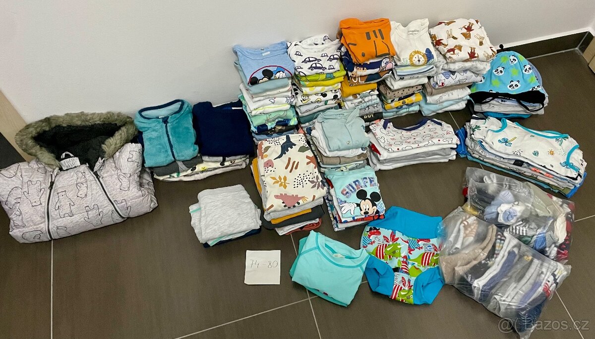 Prodam balik obleceni znacek F&F,Lupilu,Kik, Pepco pro kluka velikost 74-80. V baliku jsou mikiny 6x, body kratky rukav 24x, body dlouhy rukav 28x, tricko 6x, overal kratky rukav 15x, overal dlouhy rukav 7x, teplaky 9x, kratase 5x, kombineza 1x, plavky 2x, koupací tricko 1x, ponozky, cepice. Pouze osobni odber celeho baliku, v pripade zajmu piste na email.