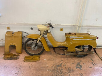 Prodám Jawu 20 na díly nebo renovaci, přidám plech sedadla a molitan. Pod nátěrem je původní barva piskově žlutá.