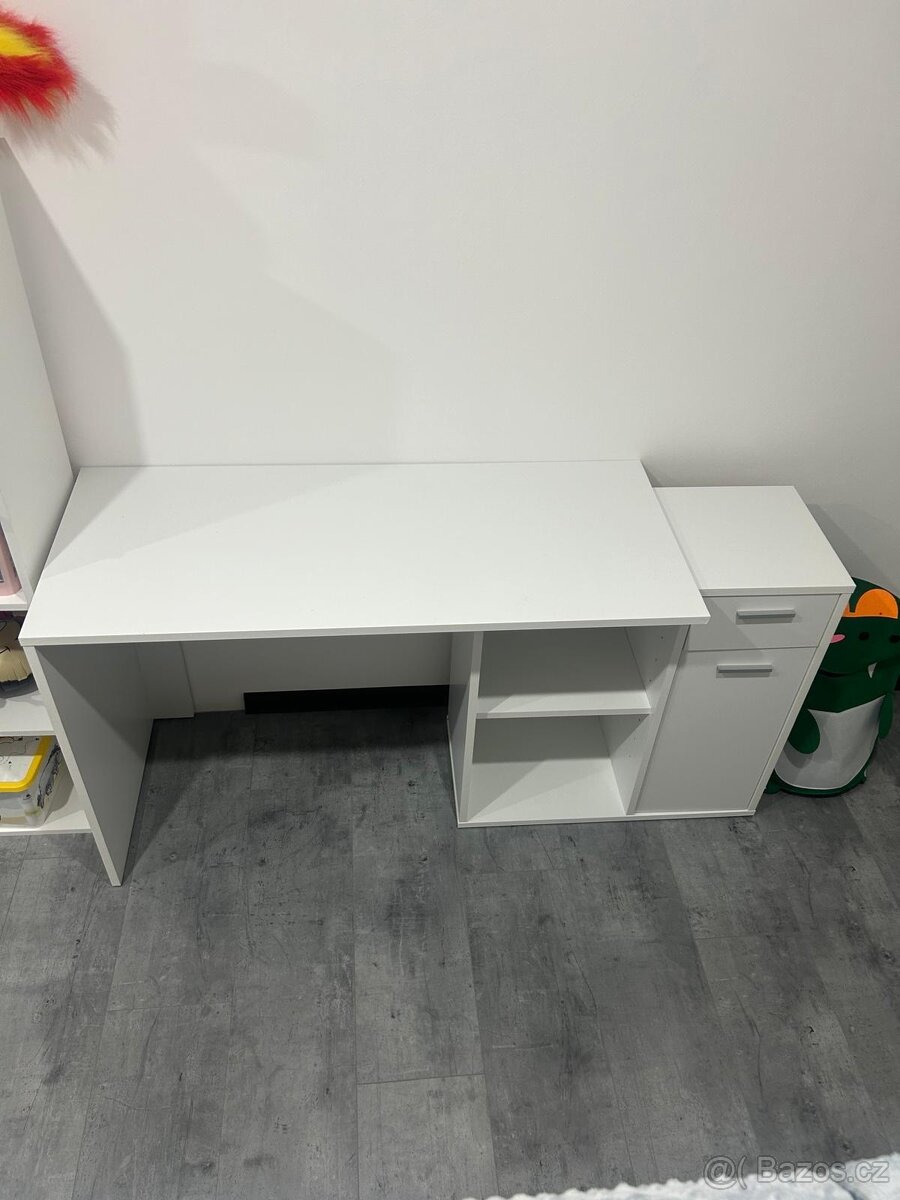 -prodám pouze sestaveny, nikdy nepouzity, psaci stul, ktery byl zakoupeni v XXXLutz, -spodni cast se da otocit do pismene L, -celkova delka 150 cm, bez skrinky (kdyby se dala do L) delka 117 cm, delka skrinky 33 cm, hloubka 50 cm a vyska 75 cm, -koupeno za 4.780,-Kc, prodam za 2.499,-Kc. Osobni vyzvednuti je mozne v Praze 10 - Horni Mecholupy.