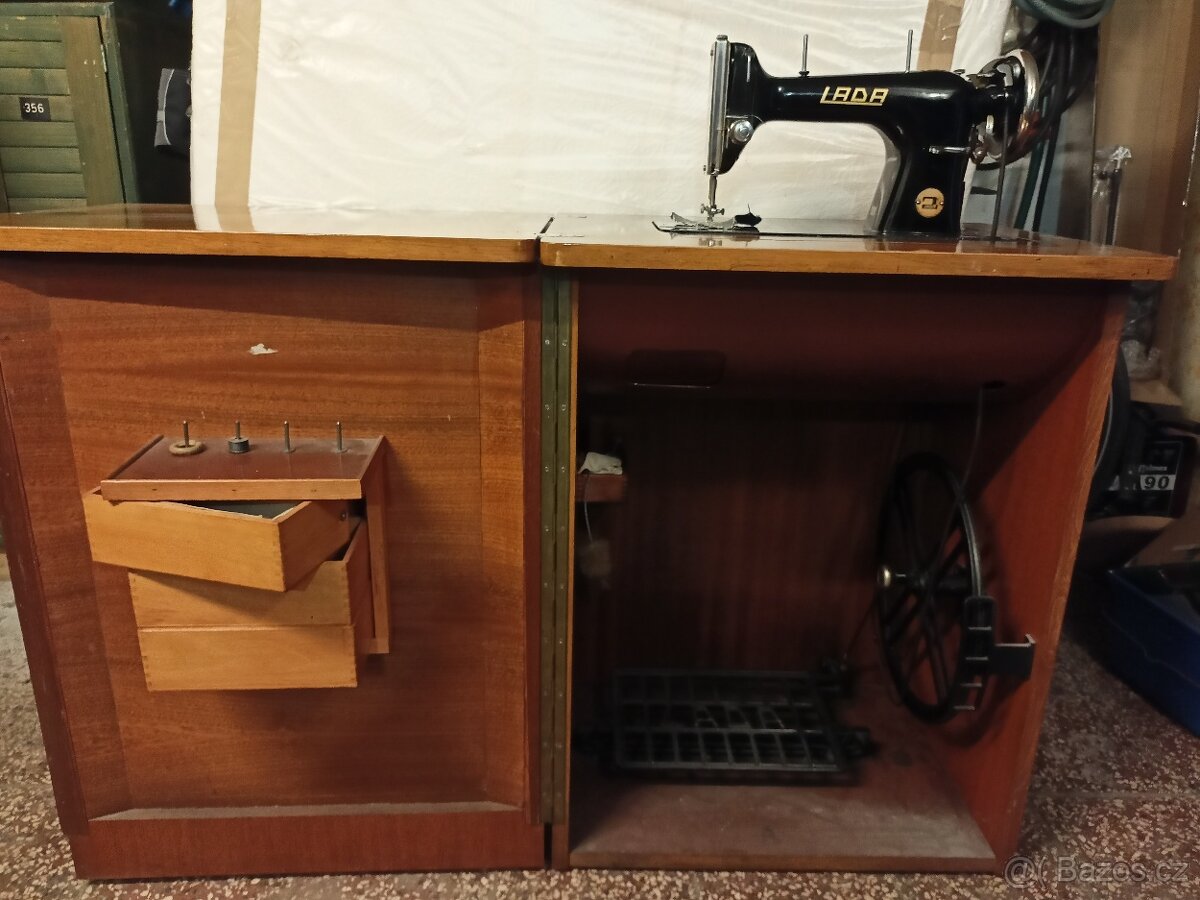 Skříňový šlapací stroj LADA, plně funkční ve výborném stavu.
