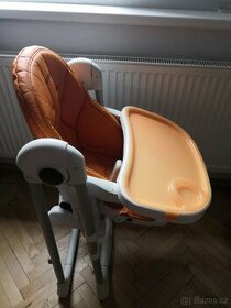 Prodám stabilní jídelní židličku Peg-Pérego prima pappa zero 3. Potah je oranžové barvy, koženka, používáním opotřebovana, praská a loupe se, ale jinak vše funkční. (na netu lze sehnat i nový) Díky nastavení poloh lze použít od narození až do 3 let věku dítěte. Stolek s těžce odnímatelnou jídelní plochou, lze nastavit různou výšku židličky a nohy složit k sobě, aby tolik nepřekážela,(když ji nepoužíváte). Má malinka kolečka zabudovaná ve spodní části, pro snadnější manipulaci.