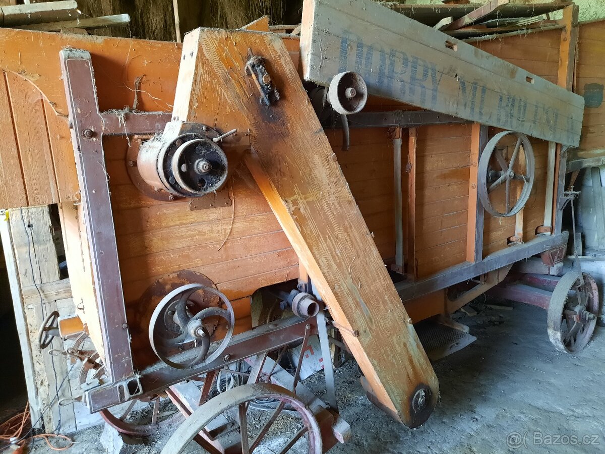 Prodám funkční mlátičku firma Dobrý Mladá Boleslav z počátku 20. století (1905).
