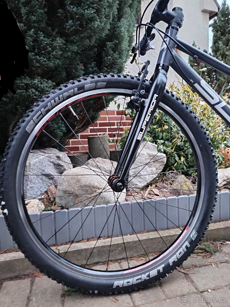 Prodám dětské odlehčené, lehké kolo superior fly ve velikosti 26. Kolo je z důvodu vyblednutí staré barvy nastřikano novou barvou + originální samolepky a přelakovano. Tmavě šedá a černa vidlice, stříbrné polepy. Komponenty vše vyčištěno. Na kole je hliníkový držák na láhev z bočním otvorem . Lepší u menších rámu. Řazení 9 rychlostí Deore. Na kole jsou širší lehké kevlarové pláště schwalbe rocket Ron 26x2.1 Originál pláště 26x1.75 mohu přidat ke kolu. Slušné jednání/sleva na 6000kč