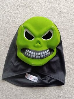 Zelená maska. Na nadočnicových obloucich a bradě malinko odřená barva, viz foto, jinak v pořádku.. Vel. uvedená 9 až 10 let, ale je univerzální, oblékne ji i dospělý..