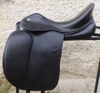 Drezurní sedlo nejvyšší kvality z telecí kůže, posedlí 17, komora 33( lze přetvarovat ), nastavitelné opěrky ( možno dodat s nižšími ) Cena nového sedla nad 90000 Kč.