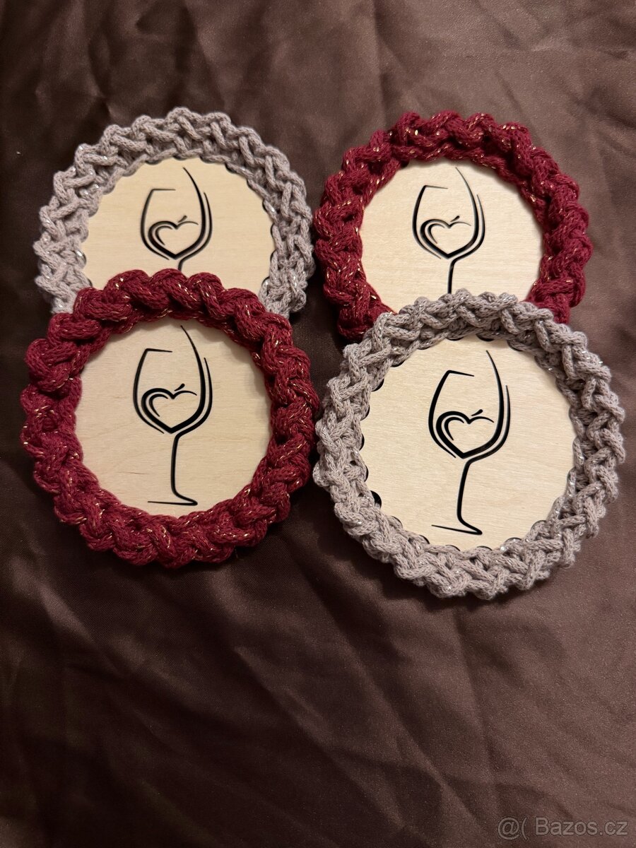 Krásné podtácky v sadě s motivem vína. Lze zakoupit celou sadu čtyř kusů za 340Kč nebo set dvou podtácků (libovolná barva) za 170Kč 🙂 Možné osobní předání v Brně nebo zaslání přes Zasilkovnu / Balikovnu. Kontakt prosím na e-mail nebo SMS 🙂 Případně na IG helidor_crochet