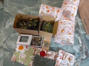 Velká sada pro králíčka ihned k odeslání, tunel 77x50cm, průlez 25cm, dost velký i pro větší králíčky, látkový seník na klec, čmuchaci velký kobereček 60cm, mix list obsahuje lísku, vrbu vc. tenkých větviček,a krabici 30cm sušené břízy, mix květů levandule, pampeliška, sedmikráska ,šipek, a kořen pampelišky vc.pampelisks,950,-/vše