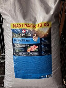 Nabízím nové nenačaté granule 20 kg. Ontario Puppy All Breets pro štěňata a mladé psy všech plemen od 1 do 12-ti měsíců. Granule jsou bez sóji, obilovin a chemických látek obohacené o prebiotika a postbiotika pro zdravé trávení. Zakoupeny 7/1. 2026. Expirace 7/26. Z důvodu přepravy špatně viditelná. Původní cena 2029 Kč. Preferuji osobní odběr z Prahy Chodov. Popřípadě po domluvě přivezu po Praze a blízkém okolí. Neposílám.