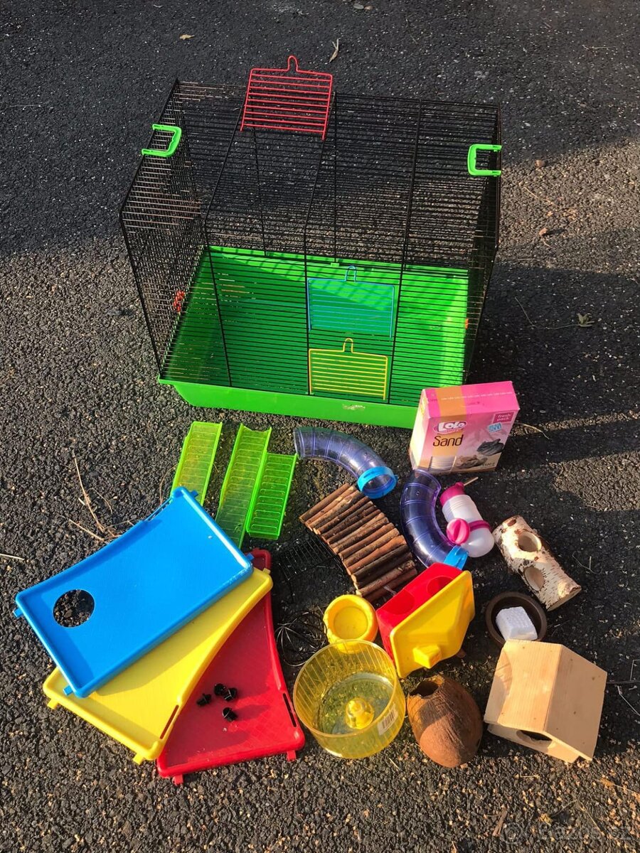 Prodame klec pro křečka s vybavou. 50cm X 32 cm X 45cm