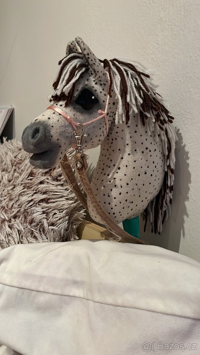 Prodávám hobby horse,má hodně vybavení, uzdecka na hh stoji 500 i otěže,další bez udidlova uzdecka stoji 50 i otěže,2 ohlávky stoji do hromady i s jedním vodítkem 100 kc, parelka i s otěži stoji 50 kc, deka na hh stoji 65 kc koník vyjde na 2000 + i poštovné dohromady chci za nej 2765 kc komunikuji přes SMS a WhatsApp děkuji (na ceně se dá ještě domluvit po případě ale pod 2500 nejdu ) ( poštovné v tom taky připočteno )