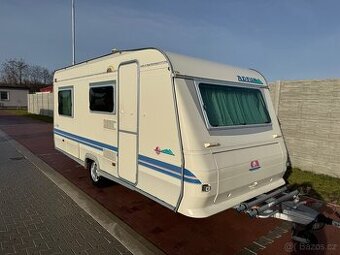 KARAVAN JE PRODÁN! Prodám karavan Adria Unica 462 r.v 2002 s kompletně uzaviratelným stanem a nosičem jízdních kol. Max Váha 1300 kg . Rychlost 100 km/h. Výbava: bojler, plynové topení s rozfukem, trojkombinovaná lednice, zatemňovací rolety a sítě proti hmyzu ve všech oknech i vchodových dveřích, velké střešní Heki okno, velké sezení rozložitelné pro přespání 2 osob, pevná postel s výklopným roštem, kazetové wc s el.splachováním, sprcha, dřez, velká šatní skříň, spousta úložných prostorů, stabilizátor, el. přívodní kabel. Karavan je nezateklý, neohnilý, nehavarovaný, čerstvě po STK. Stačí pouze zaregistrovat. S karavanem je možné ihned odjet. V zimě garážovaný . Vše plně funkční,odzkoušeno-předvedu. Karavan byl zakoupen a zkontrolován námi v Holandsku od soukromé osoby, která byla po celou dobu jediným vlastníkem- mohu doložit. Znamená to tedy, že karavan nebyl dovozen od žádného překupníka ani z bazaru. Karavan je v nevídaně zachovalém stavu!