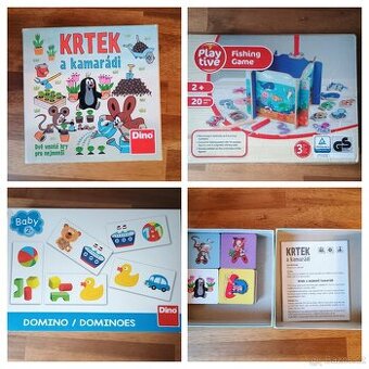 Téměř nepoužitá hra Krtek a kamarádi, od 3 let - 100Kč Téměř nepoužité domino, od 2 let - 80Kč Dřevěná hra chytání ryb a balanční beruška - kompletní, díly ve velmi dobrém stavu, krabice pomačkaná - 60Kč/ks K vyzvednutí Praha 6 Petřiny