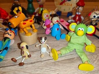 Prodám dřevěné hračky, většina byla vystavena ve skleníku na poličce. Marioneta a loutky na prsty, hodiny, mačkací, k zavěšení, harmonika, korálky apod. Na ceně je možné se domluvit.