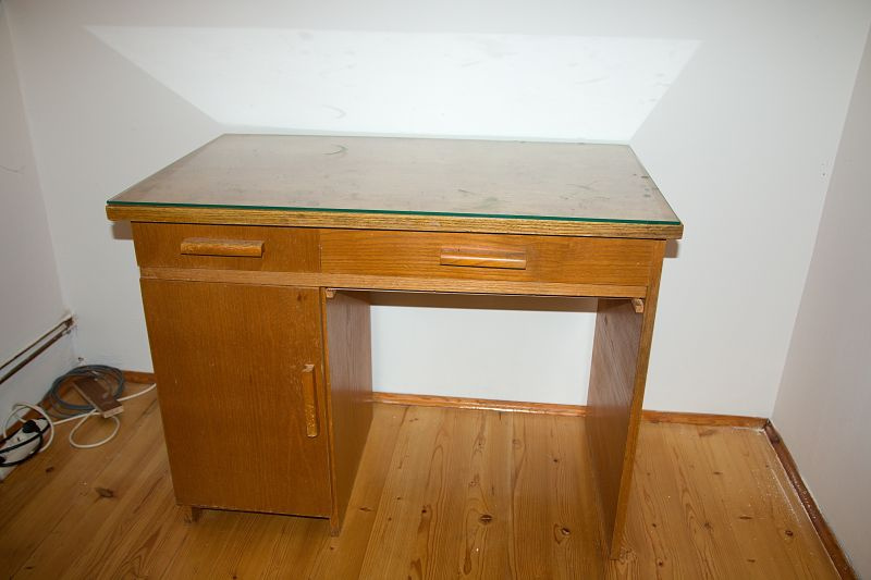 Prodám dřevěný psací stůl, zakázková výroba. Dvě zásuvky, skříňka, sklo na vrchní desku. Pouze osobní odběr Praha