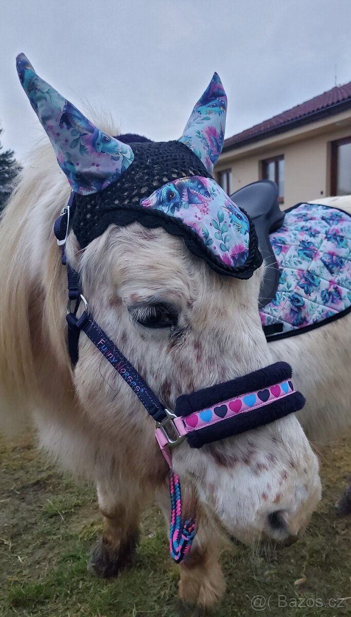 Krásná sada dečky a čabraky, šitá na zakázku, velikost shetty/menší pony, pouze 1x na koni. Bohužel už ji nevyužiju.